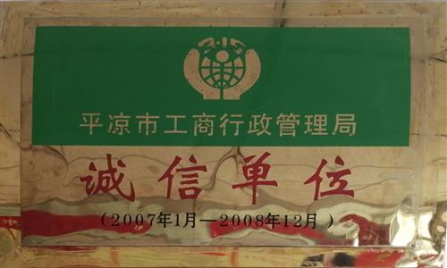 2007年至今被平涼市工商行政管理局評為誠信單位;